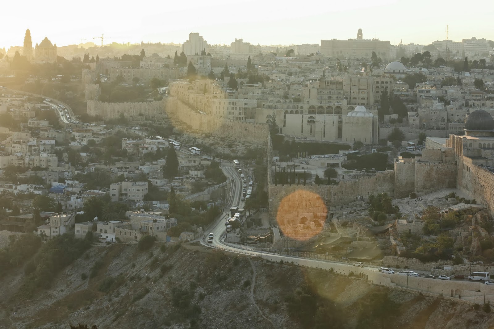 I wanted to get photos of the Jerusalem skyline at sunrise, but the evening was shaping up to be so gorgeous that we grabbed a taxi to get to the top of the Mount of Olives for sunset instead. The taxi ride was a story in and of itself (word to the wise: agree on a price before getting to your destination), but we did arrive in time for the city's final daily show.